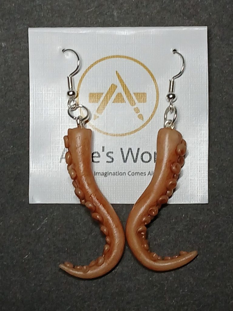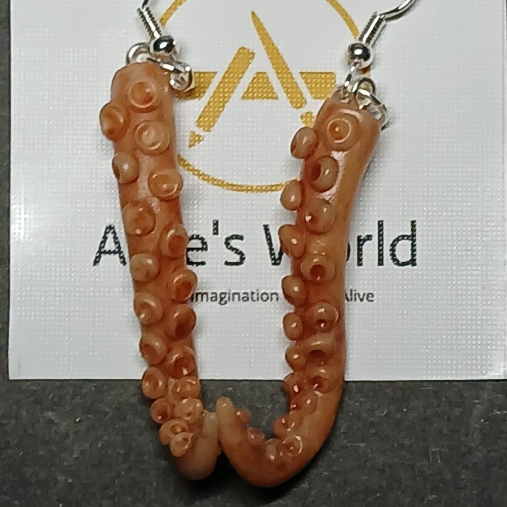 These terrifyingly realistic tentacle earrings are handmade from clay. With silver plated findings.